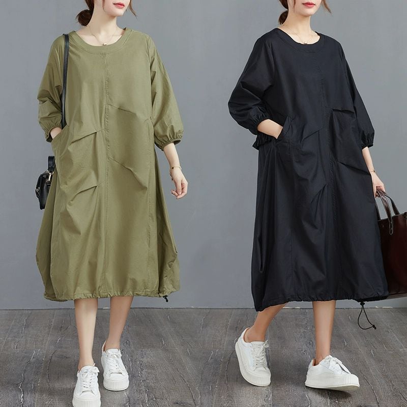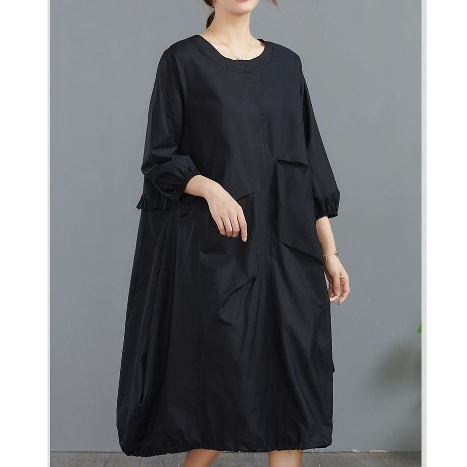 単色の軽い素材でできた、ボートネック・7分袖・ミドル丈のデザインワンピースです。袖口はゴム・裾はドローコードがついて、ふんわりとしたシルエットが魅力的です。フロントの斜めのプリーツや、バックの切り返しのフリルがキュートなアイテムです。色は2色から選べます。 SIZE:※測り方によって2-3cmの差が生じる場合がございます。 【M】バスト104cm 肩幅38cm 袖丈43cm 袖周り48cm ウエスト122cm 裾周り158cm 着丈97cm 【L】バスト108cm 肩幅39cm 袖丈44cm 袖周り50cm ウエスト126cm 裾周り160cm 着丈98cm 【XL】バスト112cm 肩幅40cm 袖丈45cm 袖周り52cm ウエスト130cm 裾周り162cm 着丈99cm COLOR:Light Green、Black 素材:ポリエステル、その他 モデル着用サイズ:L モデル情報:身長161cm 体重49kg お届けについて こちらの商品は海外店舗より直接発送となる為、 ご決済から到着までは、多くの場合【10日-2週間前後】でお届けしております。 ※在庫状況や輸送の混雑により、4週間前後かかる場合がございます。 注意事項 ・商品在庫切れにより注文キャンセルとさせていただく恐れもございますので、予めご了承くださいませ。 ・仕入れ工場を変えることがあるため、記載サイズと若干異なる場合がございます。 ・商品の色味は、お手持ちのスマートフォンの画面によって実物と若干異なる場合がございます。 ・イメージ違いやサイズ交換等、お客さまご都合による交換・返品はご遠慮ください。 送料について 全国一律580円。ただし10,000円以上のご注文で送料無料となります。 お支払い方法について ・クレジットカード決済(VISA/Mastercard/JCB/アメリカン・エクスプレス/ Diners Club) ・コンビニ決済/Pay-easy ※前払いのお支払い方法 ・Pay ID あと払い(コンビニ払い、口座振替)※あと払いのお支払い方法 ・キャリア決済(d払い/au PAY(auかんたん決済)/ソフトバンク・ワイモバイルまとめて支払い) 管理番号:M-10333