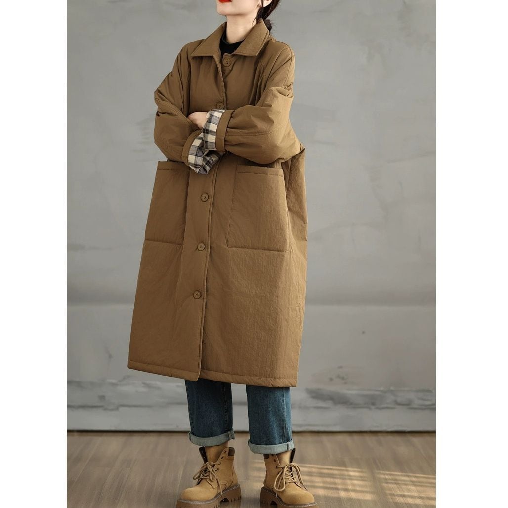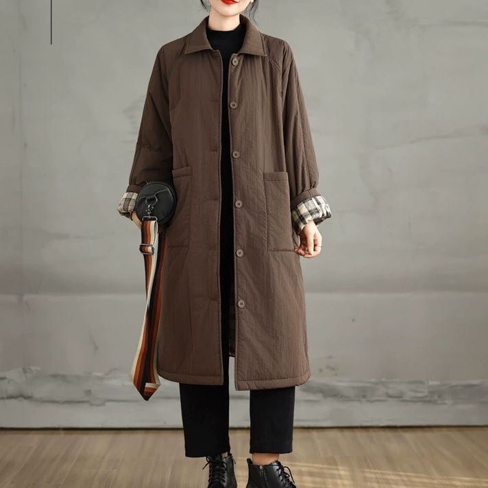 チェック柄のライニングがキュートな、単色・ポロ襟・長袖・膝丈のカジュアルコートです。厚みのあるキルティング素材の、シンプルなデザインで使いやすいアイテムです。ブラック・カーキ・コーヒーの3色から選べます。 SIZE:※測り方によって2-3cmの差が生じる場合がございます。 【L】バスト128cm 裄丈73cm 着丈104cm 【XL】バスト132cm 裄丈74cm 着丈105cm 【2XL】バスト136cm 裄丈75cm 着丈106cm COLOR:Black、Khaki、Brown 素材:ポリエステル100% モデル着用サイズ:L モデル情報:身長161cm 体重49kg お届けについて こちらの商品は海外店舗より直接発送となる為、 ご決済から到着までは、多くの場合【10日-2週間前後】でお届けしております。 ※在庫状況や輸送の混雑により、4週間前後かかる場合がございます。 注意事項 ・商品在庫切れにより注文キャンセルとさせていただく恐れもございますので、予めご了承くださいませ。 ・仕入れ工場を変えることがあるため、記載サイズと若干異なる場合がございます。 ・商品の色味は、お手持ちのスマートフォンの画面によって実物と若干異なる場合がございます。 ・イメージ違いやサイズ交換等、お客さまご都合による交換・返品はご遠慮ください。 送料について 全国一律580円。ただし10,000円以上のご注文で送料無料となります。 お支払い方法について ・クレジットカード決済(VISA/Mastercard/JCB/アメリカン・エクスプレス) ・コンビニ決済/Pay-easy ※前払いのお支払い方法 ・あと払い(Pay ID) ・キャリア決済(docomo/au/ソフトバンク/Y!mobile) 管理番号:M-10630