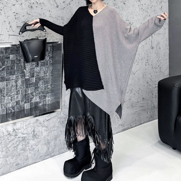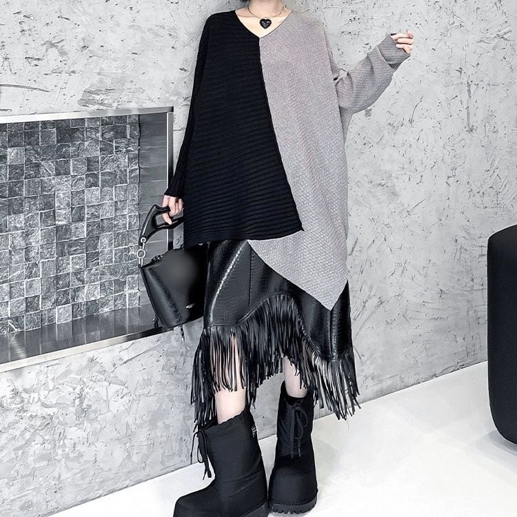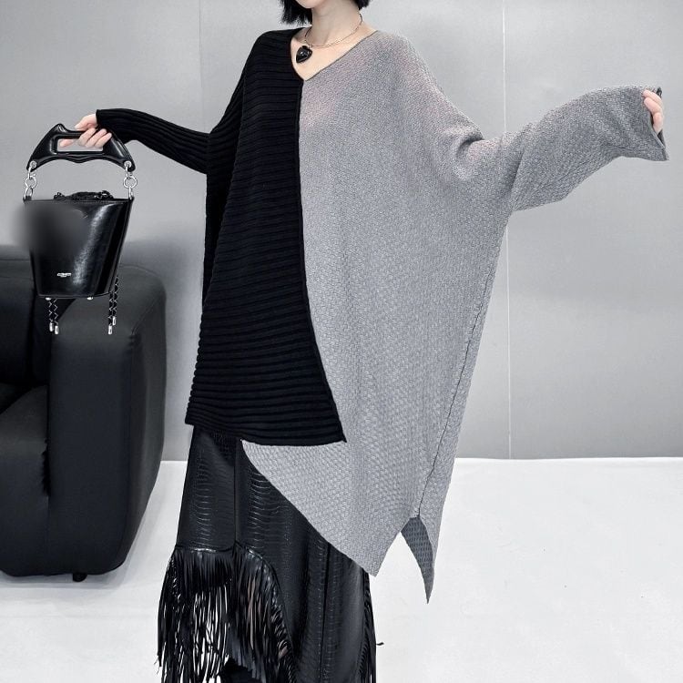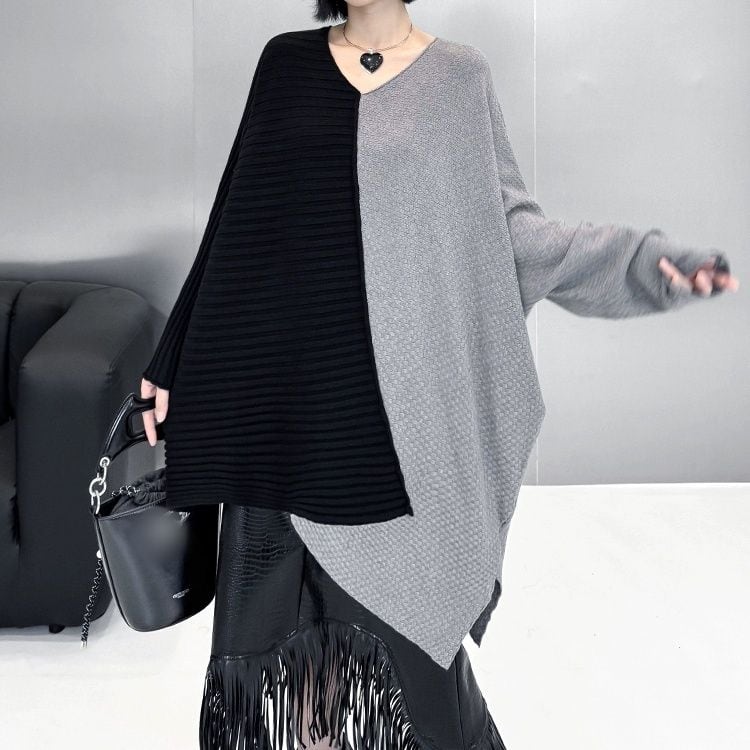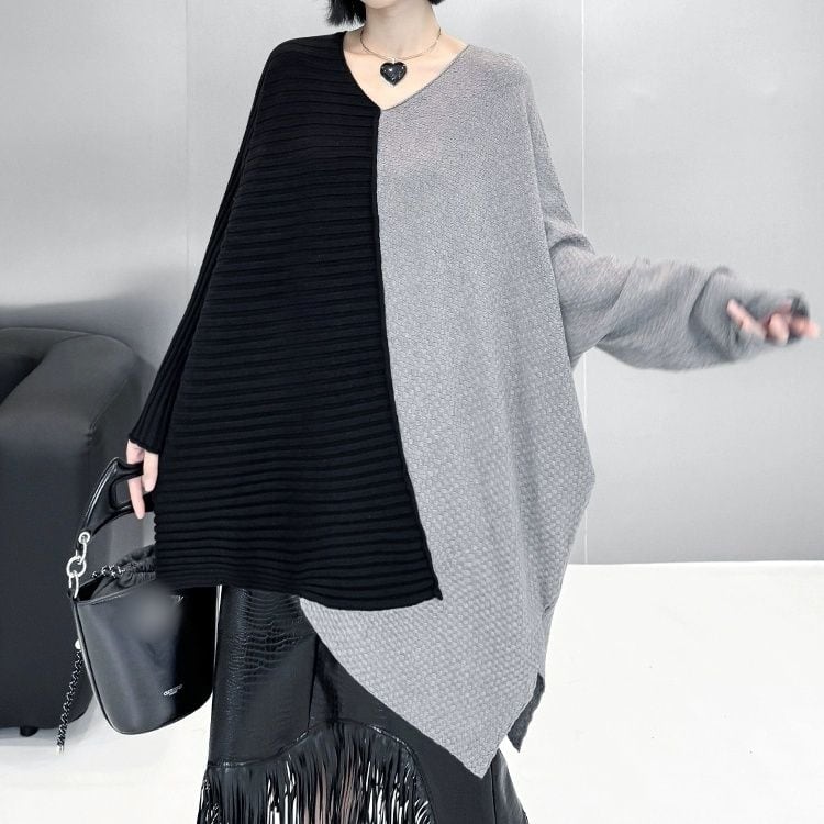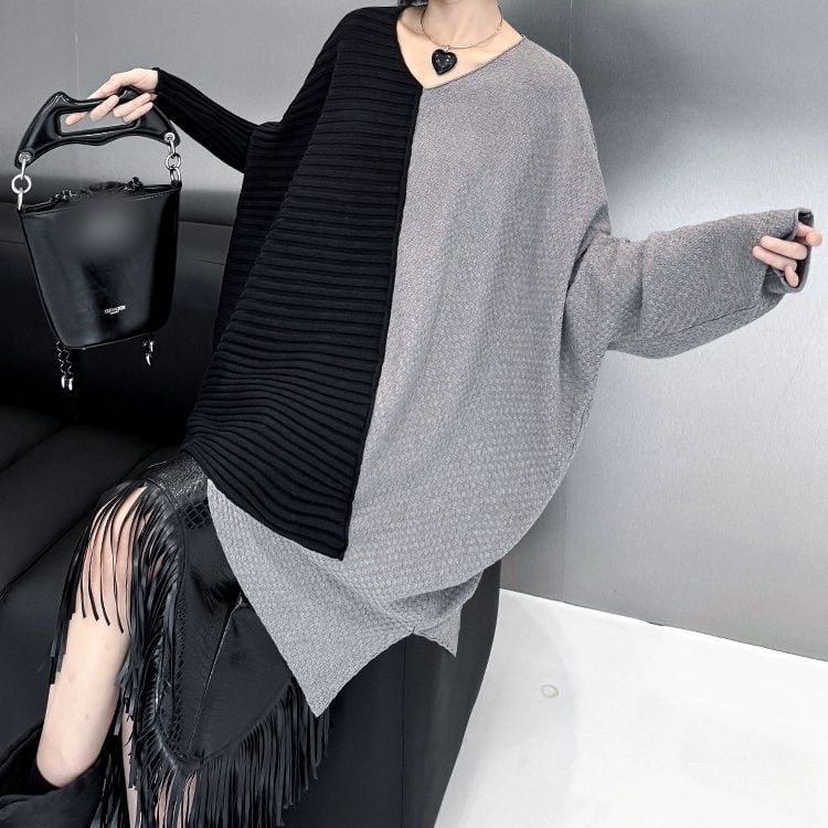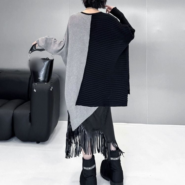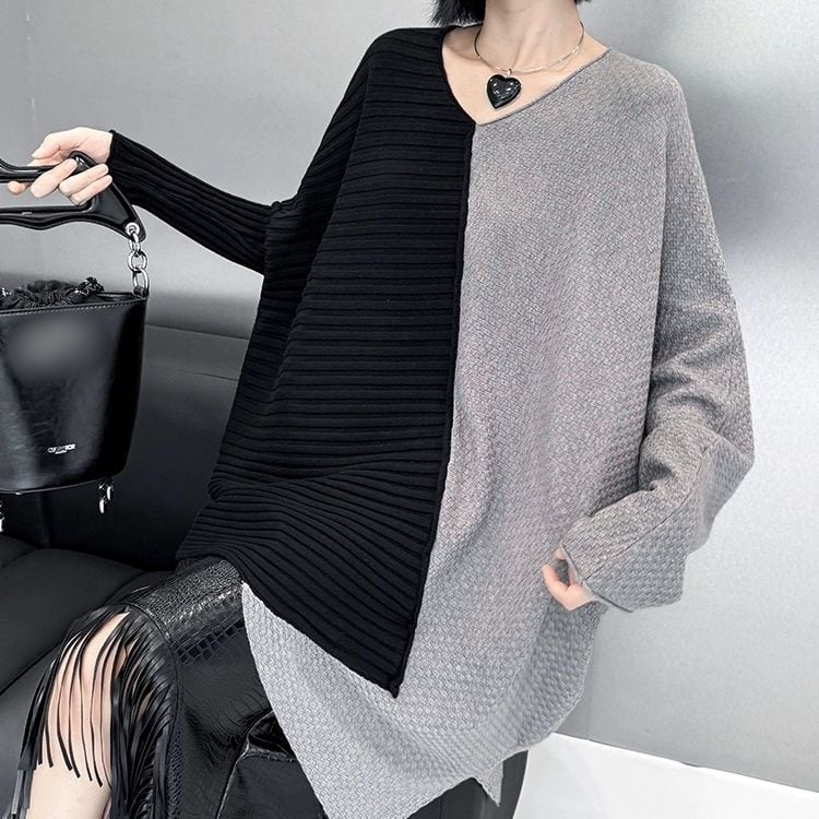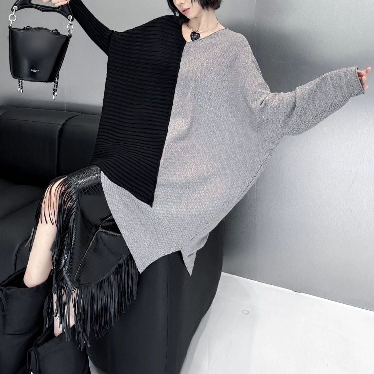 CONTRAST ASYMMETRIC DESIGN PULLOVER KNIT 3colors M-11074