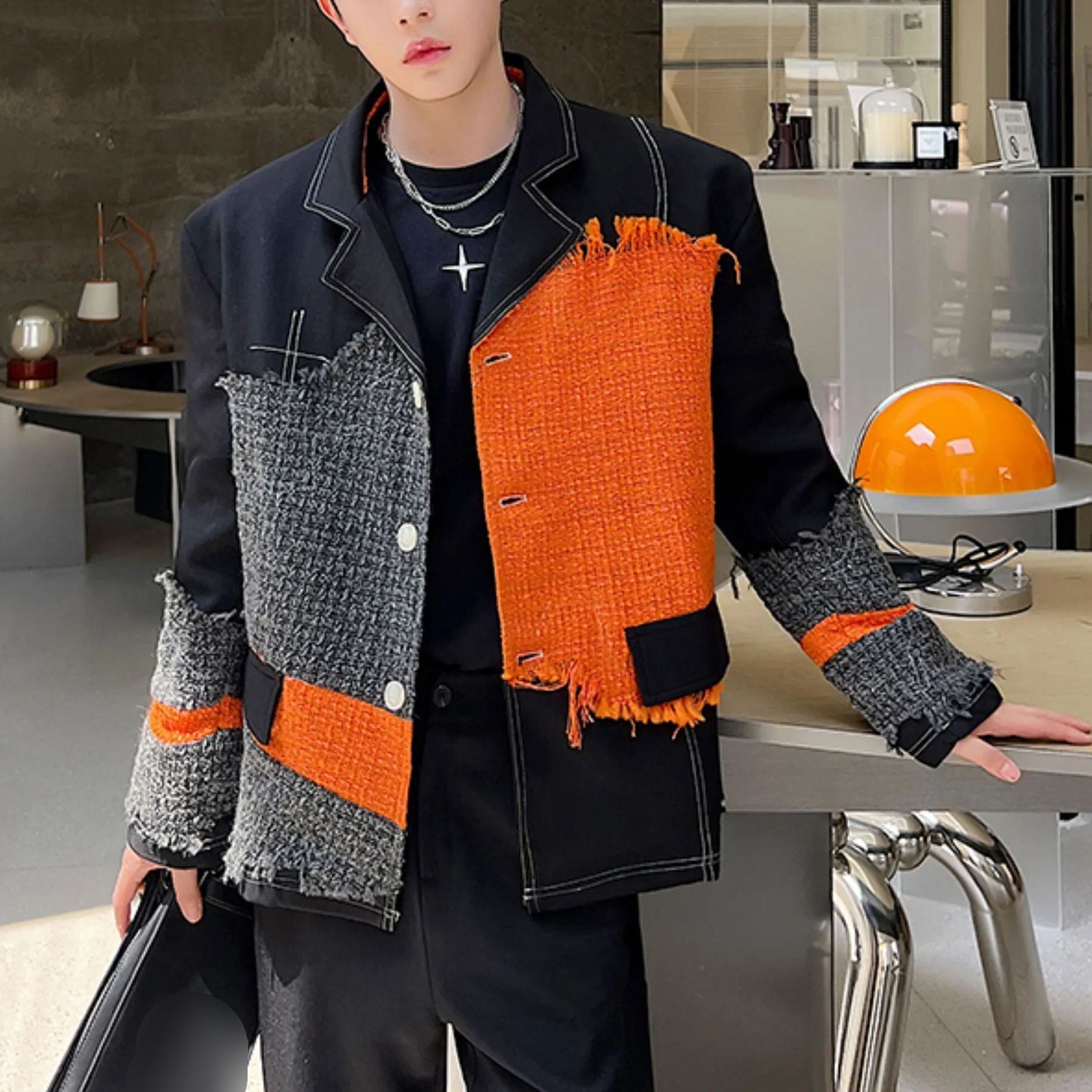 【Men】WOOL-BLEND COLORBLOCK SUIT IN RETRO CHIC DESIGN S-1876