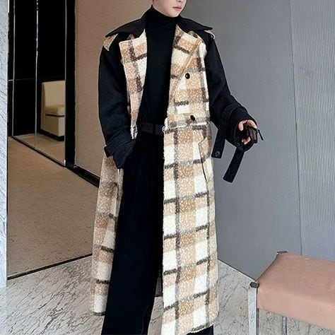 【Men】DETACHABLE TWO-IN-ONE WOOL TRENCH COAT WITH PATCHWORK DETAILING S-1919