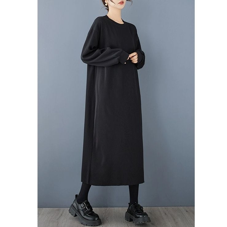 BLACK ROUND NECK MIDI PULLOVER DRESS 1color M-11234