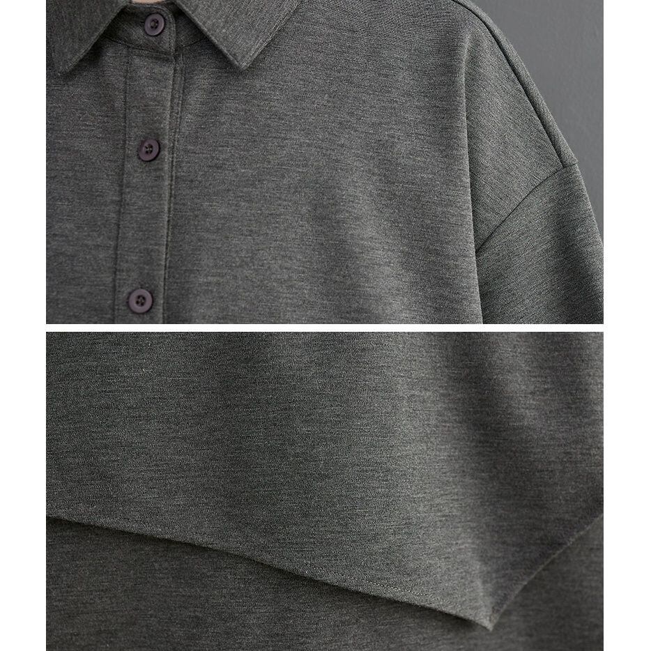 GRAY HALF BUTTON MIDI ASYMMETRIC DESIGN SHIRT DRESS 1color M-11465