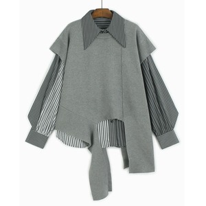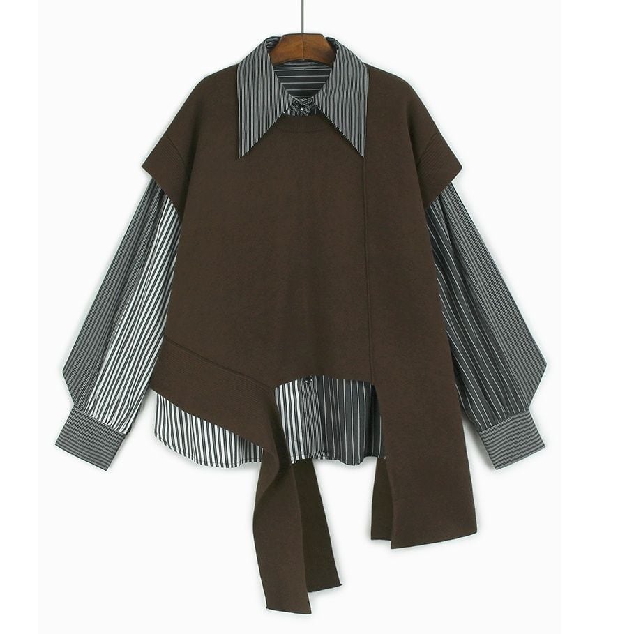 ※こちらは、シャツとベストが別売りの商品になります。 ストライプシャツを重ねたアシンメトリーなニットトップス。レイヤードスタイルで都会的な印象に。 SIZE:※測り方によって2-3cmの差が生じる場合がございます。 【FREE SIZE】 <SHIRT>バスト134cm 肩幅52cm 袖丈59cm 裾周り140cm 着丈67cm <VEST>バスト108cm 肩幅47cm 裾周り116cm 着丈48-80cm COLOR:Shirt(シャツ)、Black Vest、Gray Vest、Dark Gray Vest、Brown Vest 素材:ポリエステル100% お届けについて こちらの商品は海外店舗より直接発送となる為、 ご決済から到着までは、多くの場合【10日-2週間前後】でお届けしております。 ※在庫状況や輸送の混雑により、4週間前後かかる場合がございます。 注意事項 ・商品在庫切れにより注文キャンセルとさせていただく恐れもございますので、予めご了承くださいませ。 ・仕入れ工場を変えることがあるため、記載サイズと若干異なる場合がございます。 ・商品の色味は、お手持ちのスマートフォンの画面によって実物と若干異なる場合がございます。 ・イメージ違いやサイズ交換等、お客さまご都合による交換・返品はご遠慮ください。 送料について 全国一律580円(沖縄県は1,500円) ※10,000円以上のご注文で沖縄県を含む全国送料無料。 お支払い方法について ・クレジットカード決済(VISA/Mastercard/JCB/アメリカン・エクスプレス) ・コンビニ決済/Pay-easy ※前払いのお支払い方法 ・あと払い(Pay ID) ・キャリア決済(docomo/au/ソフトバンク/Y!mobile) 管理番号:M-11527