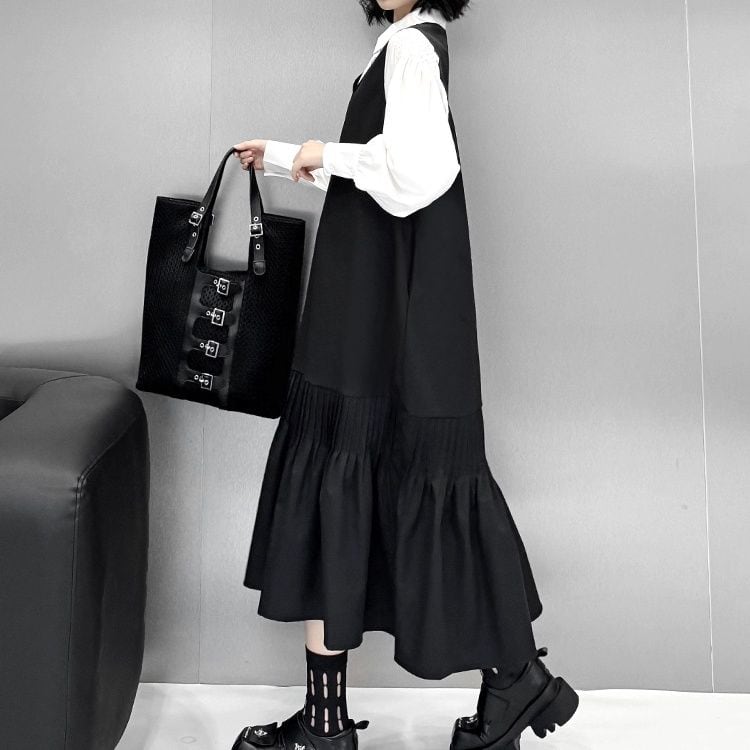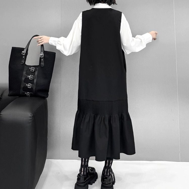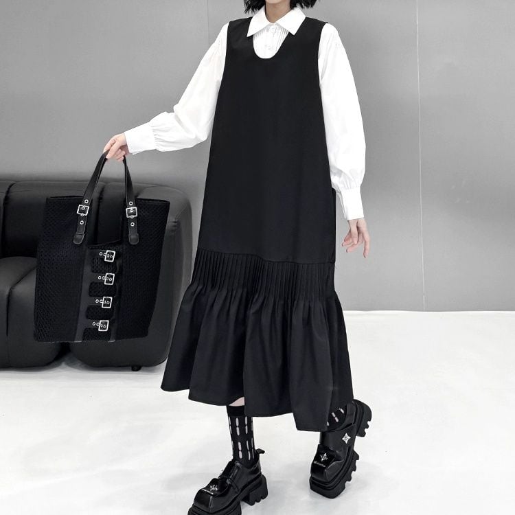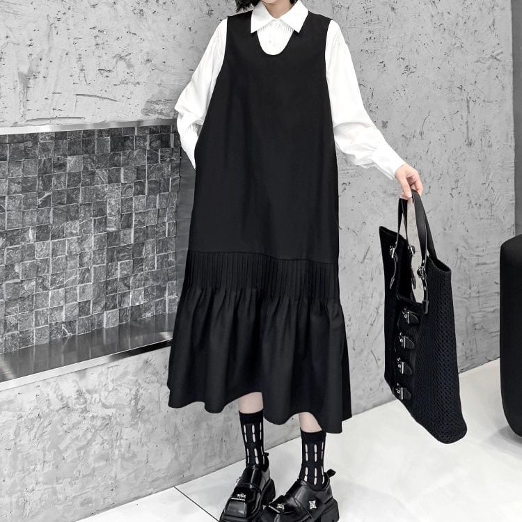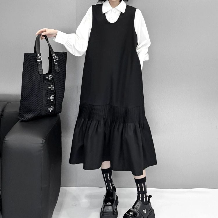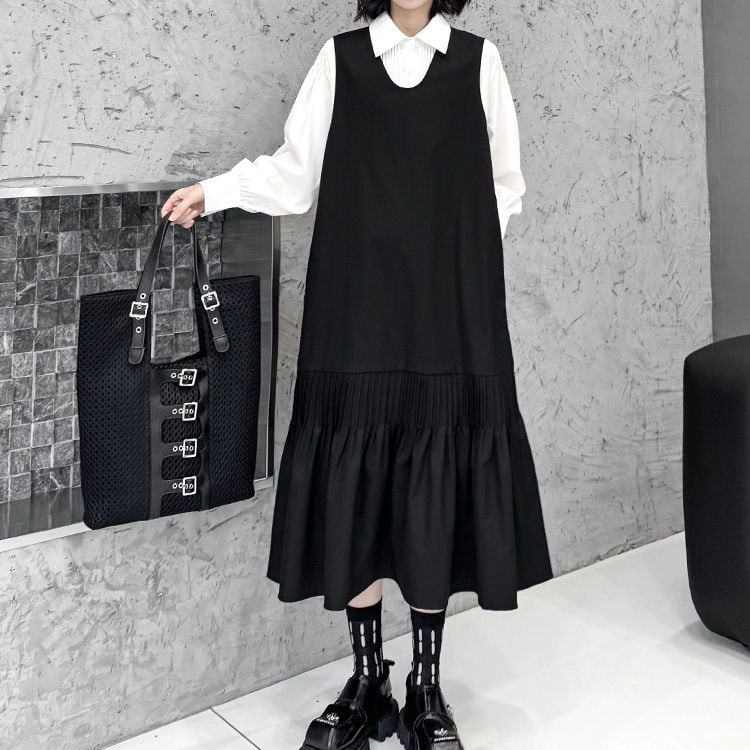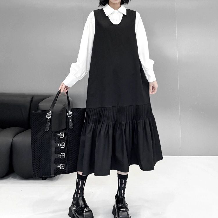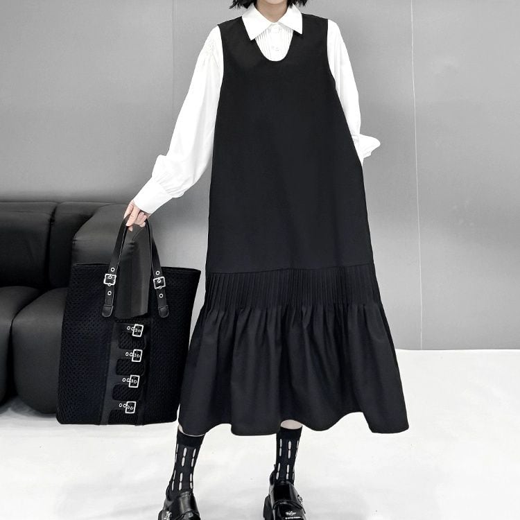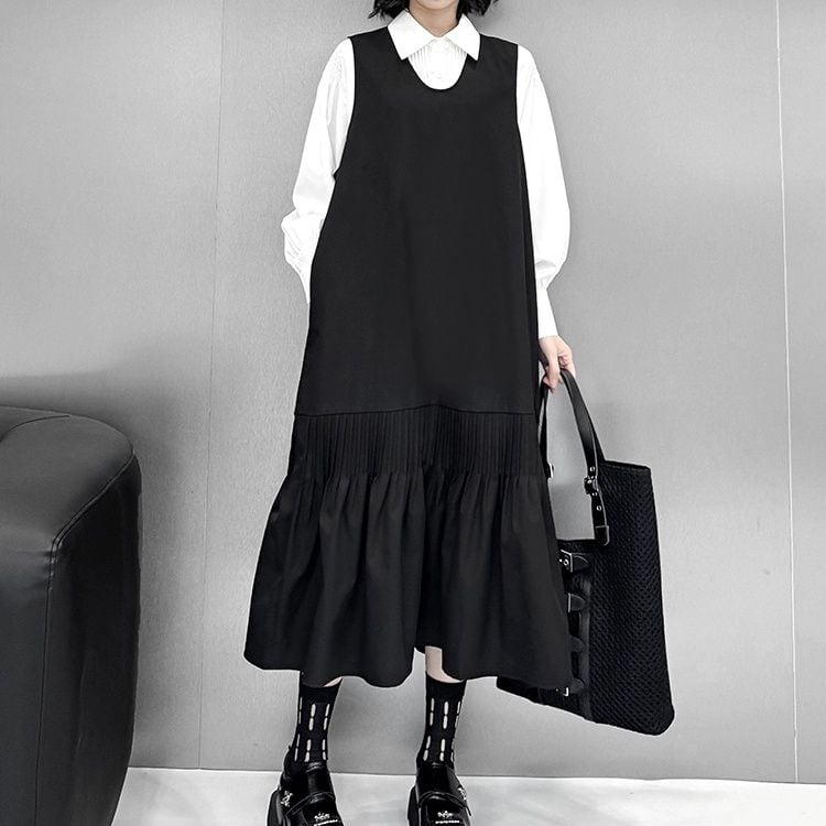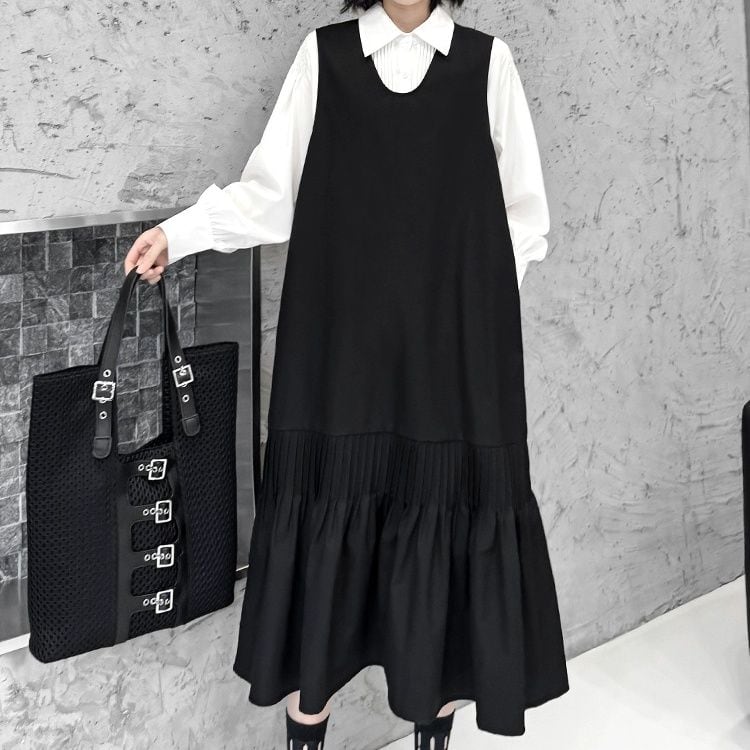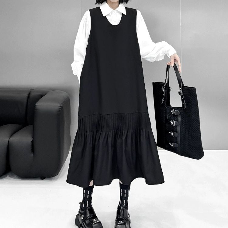 BLACK U-NECK A-LINE JUMPER DRESS & WHITE SHIRT 2colors M-11639